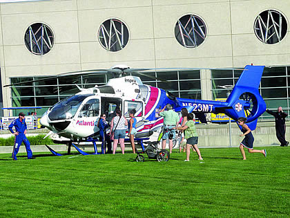 On Tuesday August 4th members of the Wildwood Fire Department participated in the Annual National Night Out event that is held at Fox Park. The WFD set up a sprinkler for the kids to play in to cool off in the high temperatures. Children attending the event also were able to use a fire hose, with the help of a firefighter, to knock down some traffic cones. In addition to the Fire Department activities there were pony rides, games, a dunk tank, police vehicles, a monster truck, and army trucks. A great time was had by all that attended. |